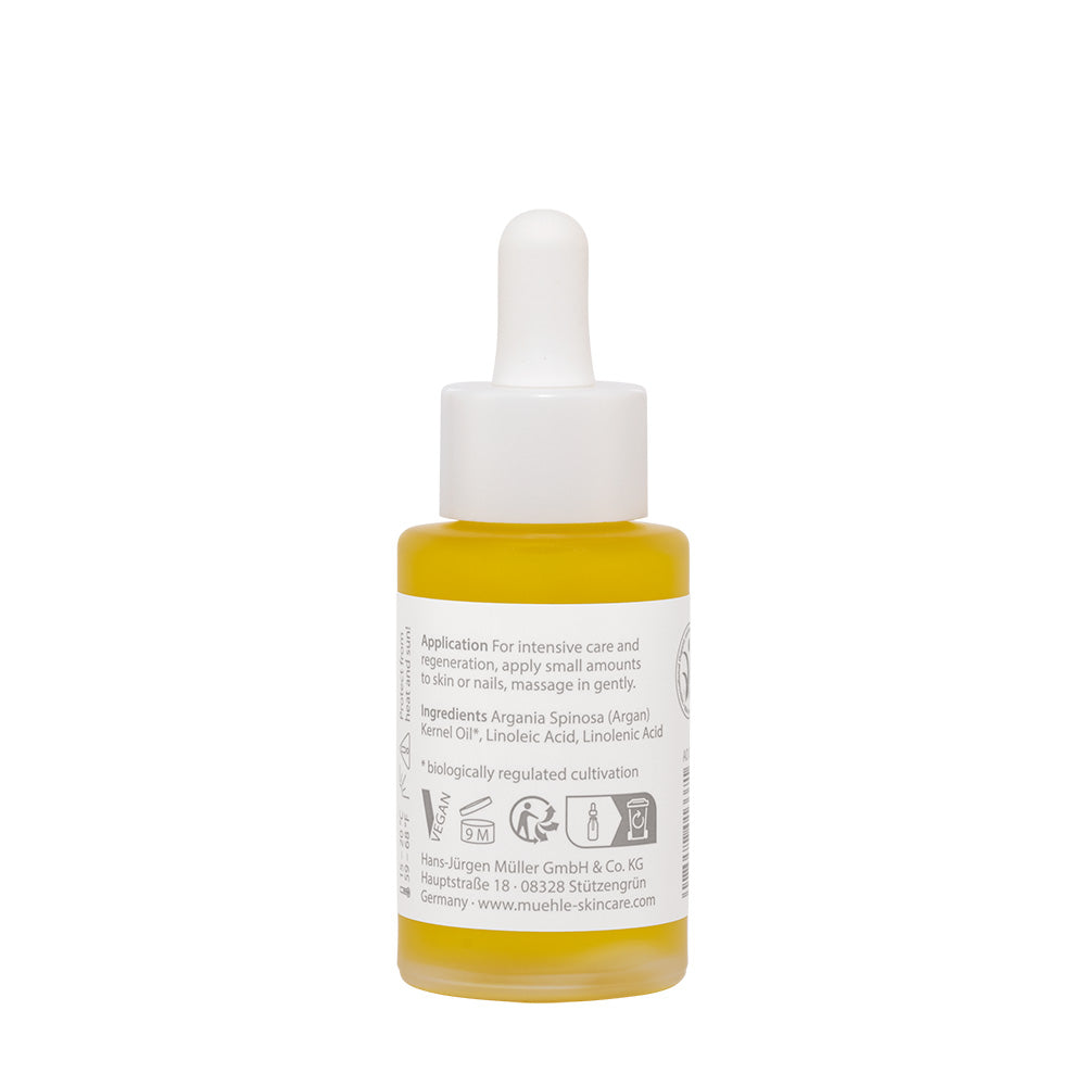 Manually pressed argan oil, rich in essential fatty acids and valuable active ingredients; nourishes, protects and regenerates irritated skin. As it can be combined with other care products, it is an ideal individual product for the intensive care of lips, skin and nails.