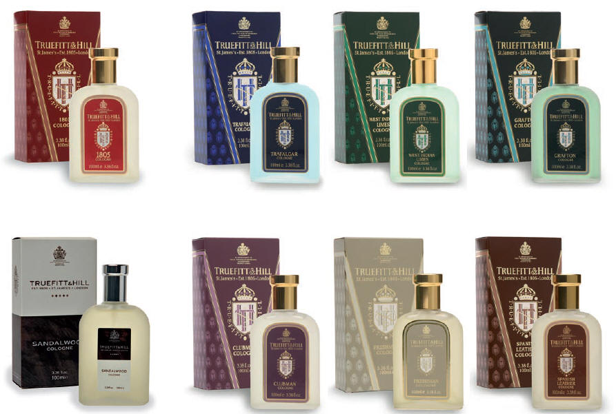 Allir 10 ilmirnir frá Truefitt & Hill í fallegum taupoka.