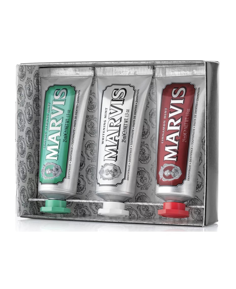 Marvis tannkremin eru skemmtilega öðruvísi. Þessi kassi inniheldur tvær túpur með mintu bragði (classic og whitening) ásamt túpu með kanilbragði! Fullkomið fyrir jólin!