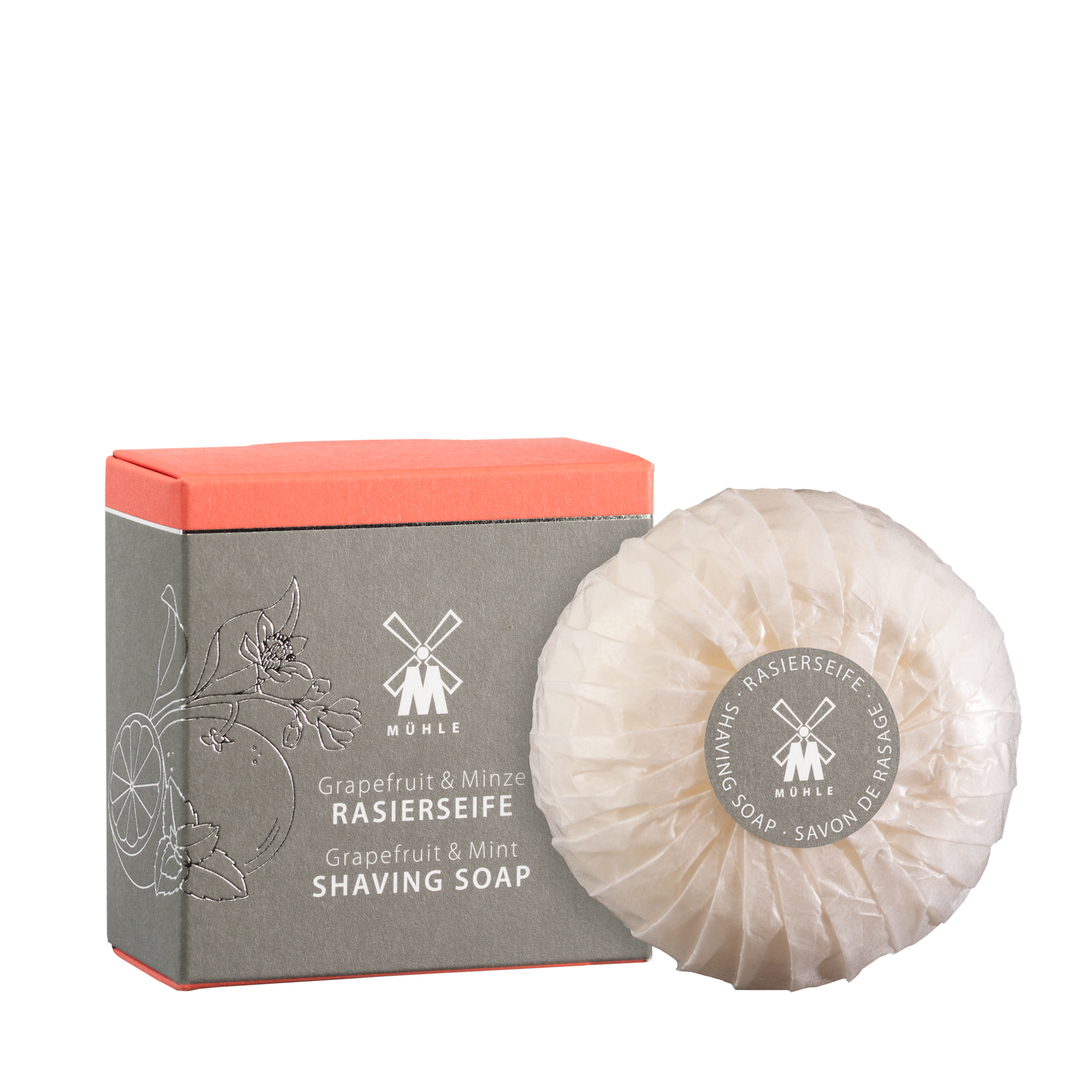 Solid shaving soaps are considered to be classics among shaving care products and are valued for their properties. Circular movements of the shaving brush produce a dense, creamy foam that remains stable throughout the duration of a shave. When lathered, the beard hair is soaked and thus prepared for a thorough and gentle shave. All of MÜHLE’s soaps are free from animal ingredients and developed according to fine recipes. They’re also particularly sustainable as MÜHLE’s shaving soaps are packaged without plastic and are extremely economical. A soothing pleasure for many months!